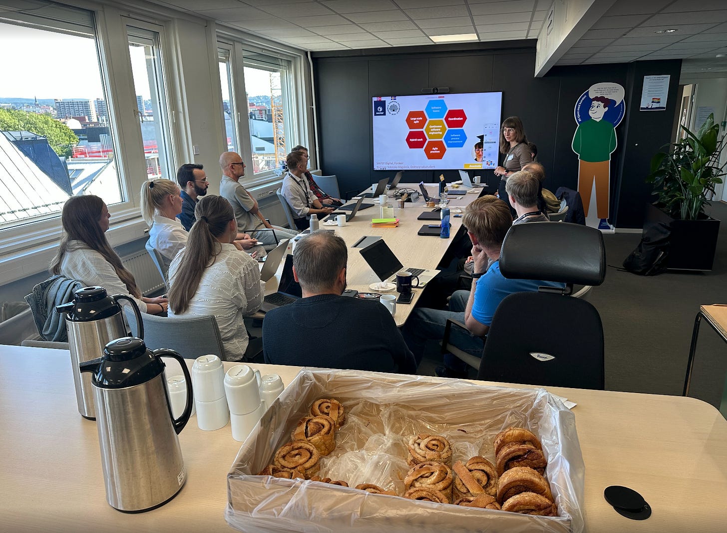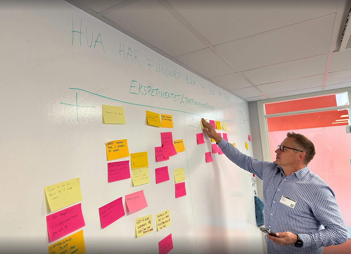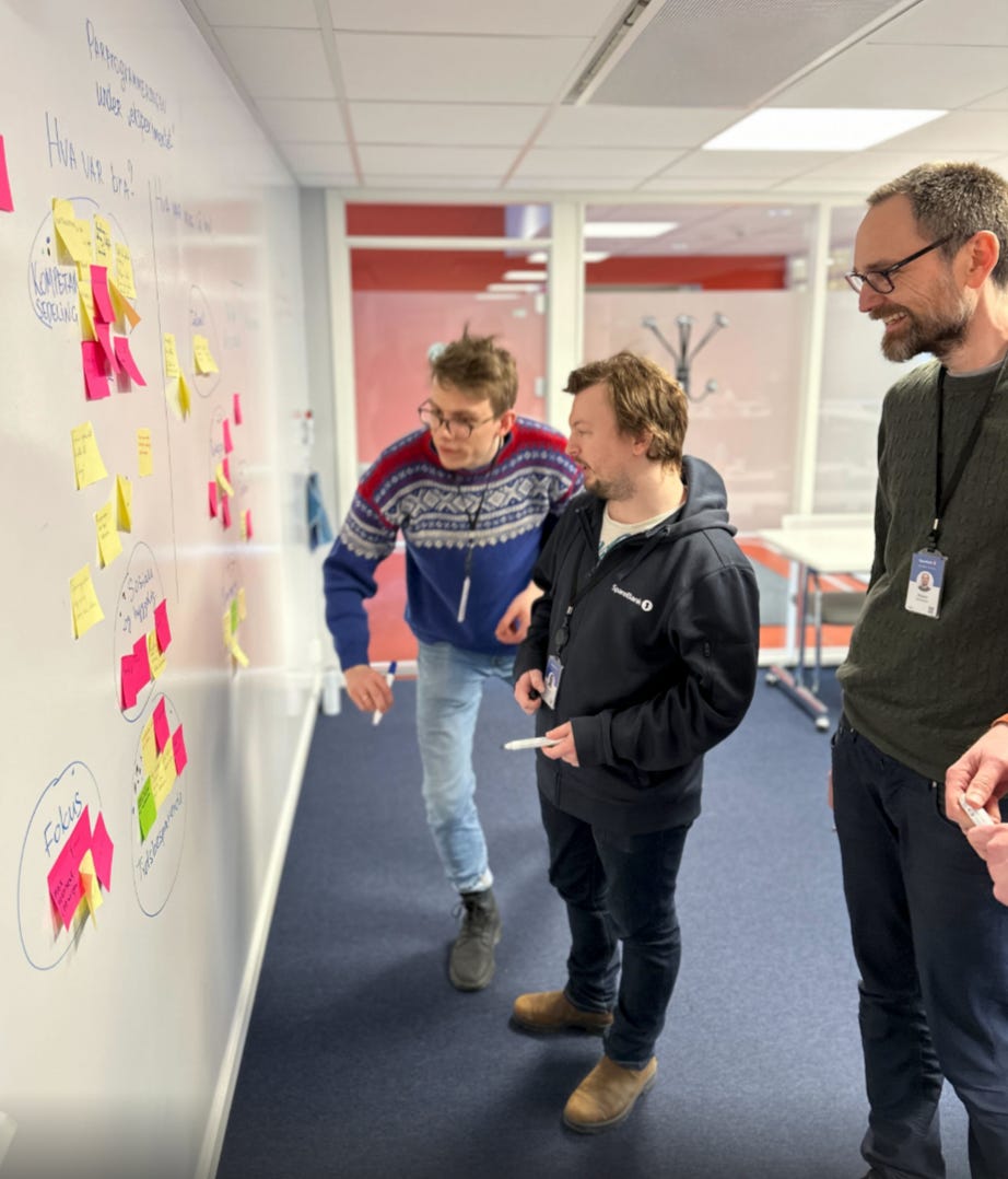 Ola and I stayed in continuous dialogue with developers and team leads throughout the period. After each weekly retro, we reviewed the feedback and suggested adjustments for what teams could try next. On the final day of the experiment, SINTEF facilitated a joint retrospective for all the teams involved. Then we wrapped up by doing something social together.